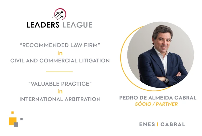 A Enes | Cabral foi mais uma vez distinguida pelo diretório Leaders League nas áreas de Contencioso Civil e Comercial e de Arbitragem Internacional.